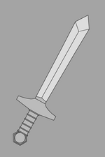 大仰な名称だが、実際は何の変哲もない中古の剣。ろくな手入れもされず、またしばしばドーチンの頭を叩くのに使われるため、刃はほとんど潰れてしまっている。剣を鑑定した魔剣行商いわく、「トマトもよー斬れん中古品」である。